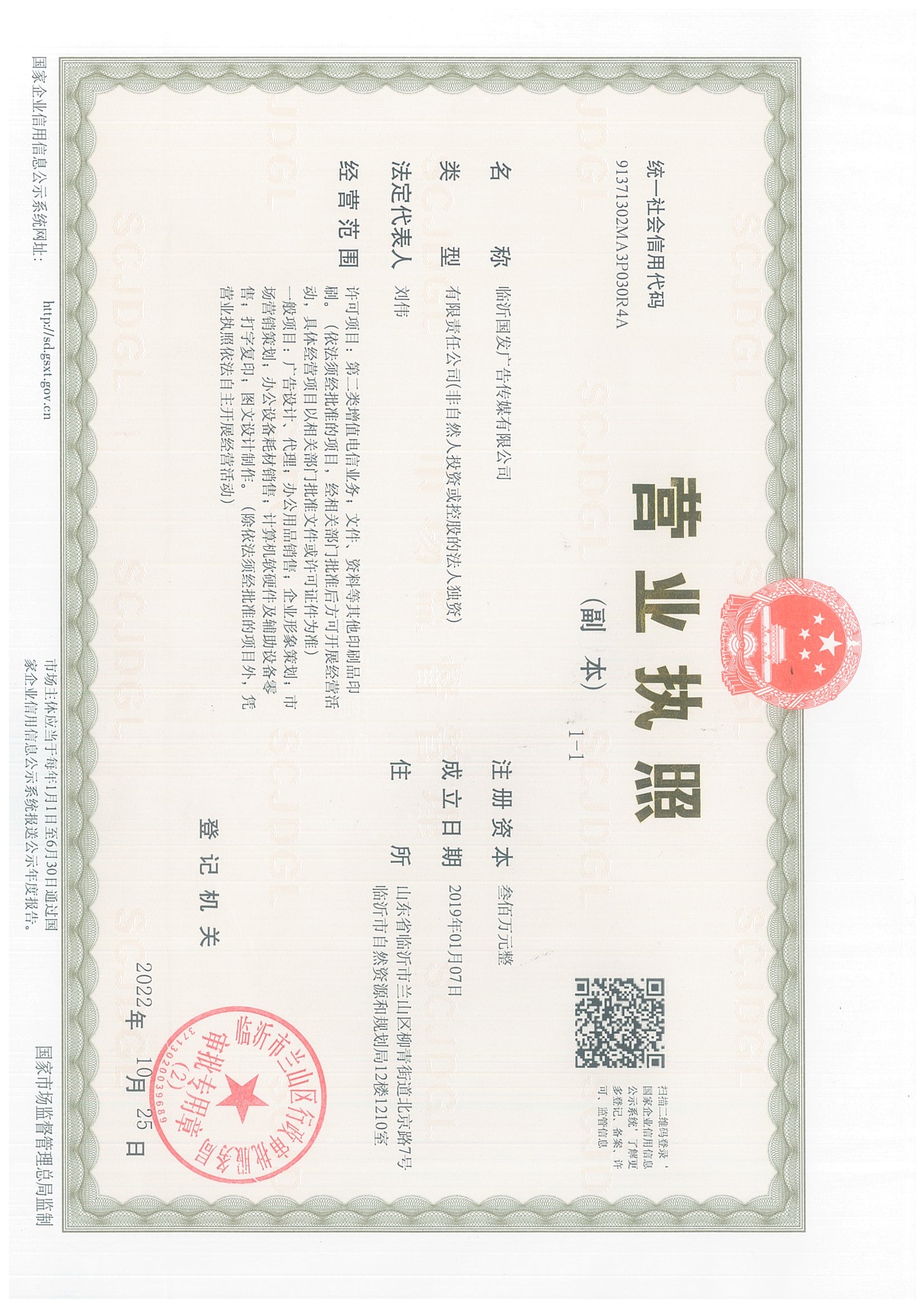 印刷经营许可证号:(鲁)印证字第37Q01Q062号